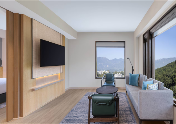Fairfield Marriott offers a range of beautifully designed rooms, including Deluxe King Rooms, Standard Twin Rooms, Standard King Rooms, Deluxe Twin Rooms, and Deluxe King Rooms. Each room is equipped with modern amenities and offers stunning views of the majestic mountains, providing a serene backdrop for your stay.