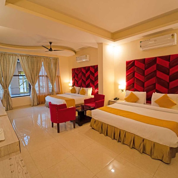 Guests can choose from a variety of rooms, including Deluxe Rooms, Premier Ganga View rooms, and Family Rooms with a Ganga View. The hotel also offers a range of amenities such as a Jungle Safari, free parking, bonfire, restaurant, and indoor games, ensuring a comfortable and enjoyable stay.