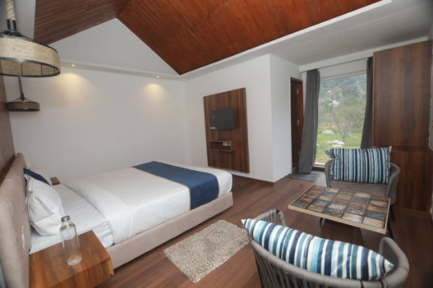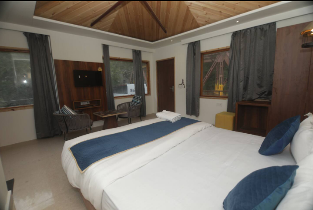 At Harsil Village Resort, you can choose from the Luxury Double Rooms and Premium Cottages, all offering panoramic views of the surrounding mountains and valleys. Each of the 23 rooms is designed to provide a tranquil retreat, equipped with modern amenities such as geysers, parking, room service, running hot water, tea makers, TVs, and WiFi. Enjoy tasteful décor and comfortable accommodations that ensure a relaxing stay.
