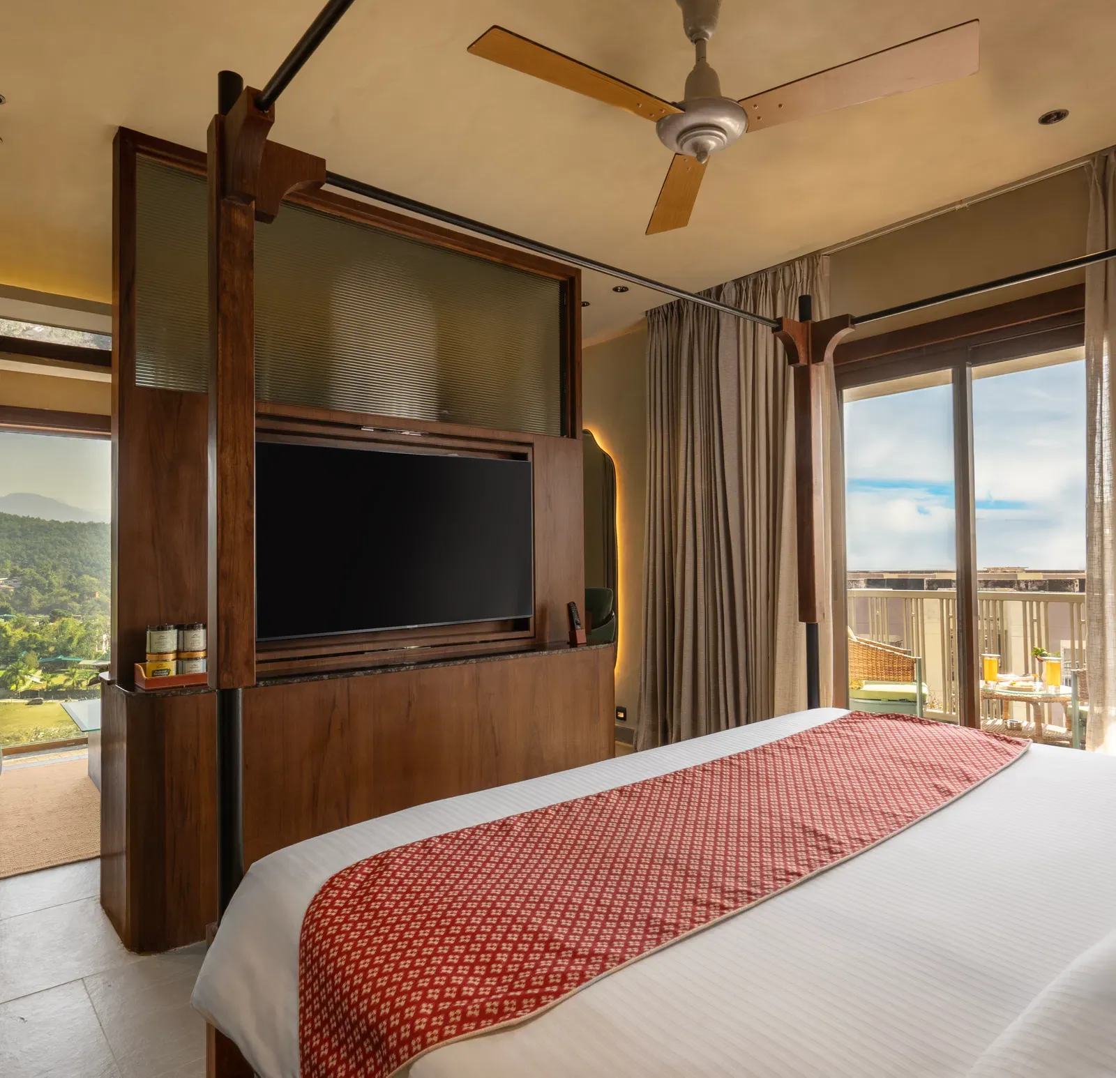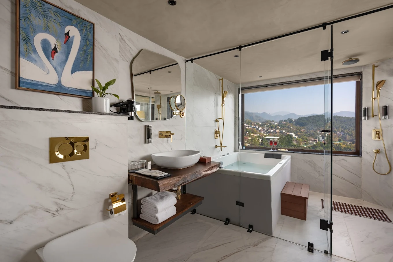 The retreat features elegantly designed rooms and suites that combine contemporary sophistication with warm, inviting interiors. Spacious layouts, refined décor, and modern amenities ensure a comfortable and refreshing stay, complemented by soothing views of the surrounding hills and landscaped gardens.