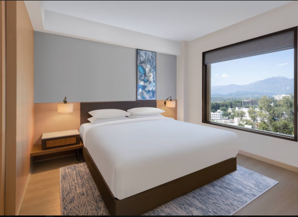 Fairfield Marriott offers a range of beautifully designed rooms, including Deluxe King Rooms, Standard Twin Rooms, Standard King Rooms, Deluxe Twin Rooms, and Deluxe King Rooms. Each room is equipped with modern amenities and offers stunning views of the majestic mountains, providing a serene backdrop for your stay.