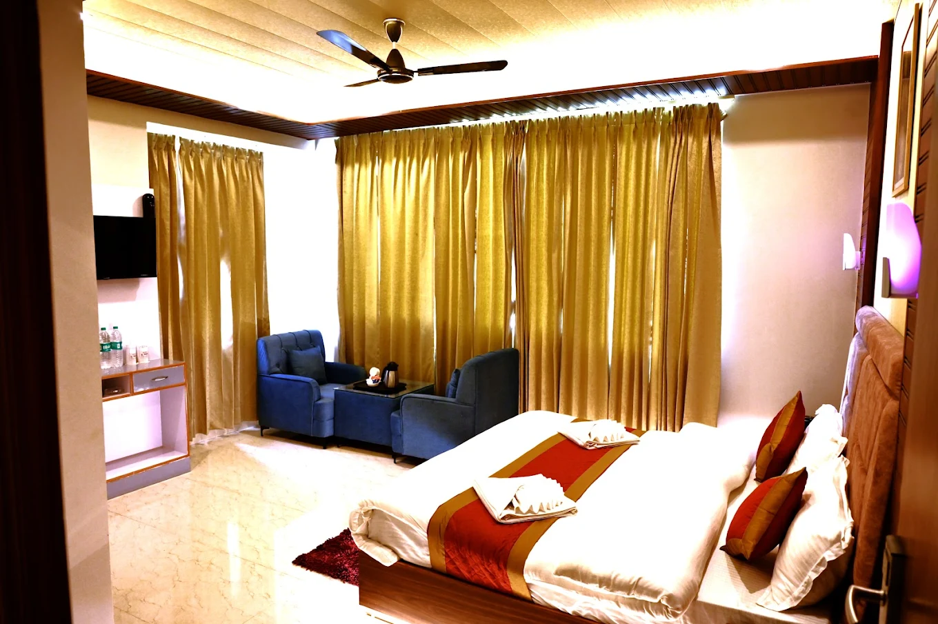The hotel features well-furnished and thoughtfully designed rooms that provide comfort and convenience. Each room is equipped with cozy bedding, essential modern amenities, and a soothing ambiance to help guests unwind after a long day of travel or work.