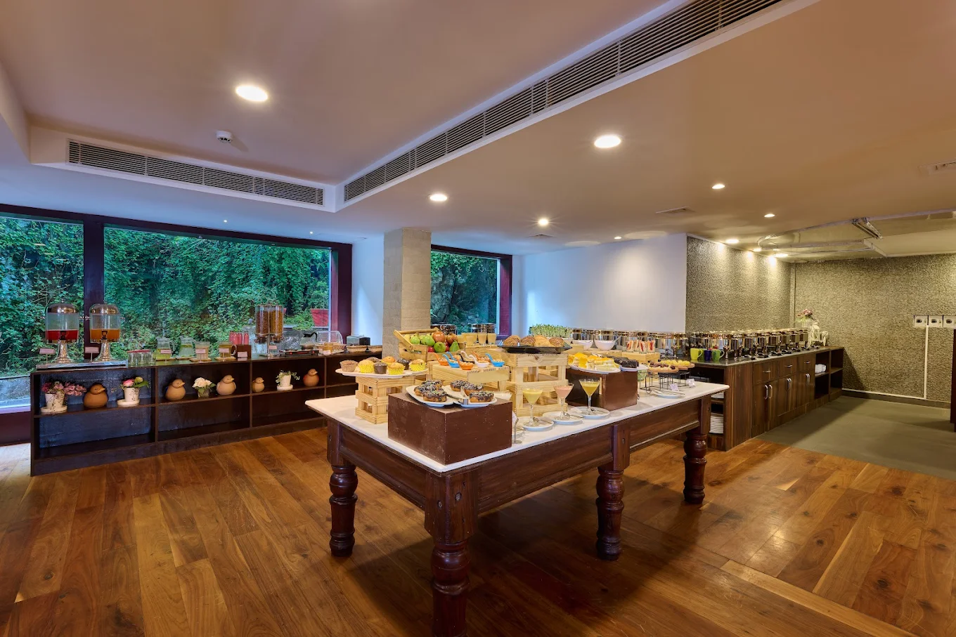 Spanning a scenic 4.5-acre estate, Renest Dunsvirk Court offers plenty of space for family enjoyment and relaxation. Guests can explore the open lawns, enjoy leisurely walks amidst the hills, or unwind at the wellness spa. After a day of activities, savor delicious meals at the on-site restaurant, which serves a mix of authentic Garhwali flavors, North Indian specialties, and international cuisine.