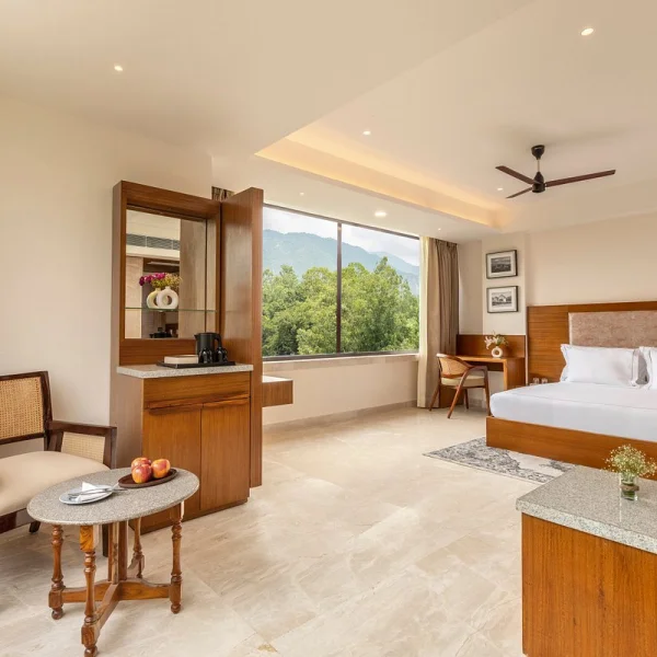 The Prominence features 42 contemporary guestrooms, each designed with care to provide a comfortable and luxurious experience. Choose from Prominent Classic Rooms with a lush green view, Prominent Premier Rooms with a beautiful Mussoorie view, or the Junior Suite overlooking the tranquil jungle. Each room is equipped with premium amenities and spacious interiors for a relaxing stay.